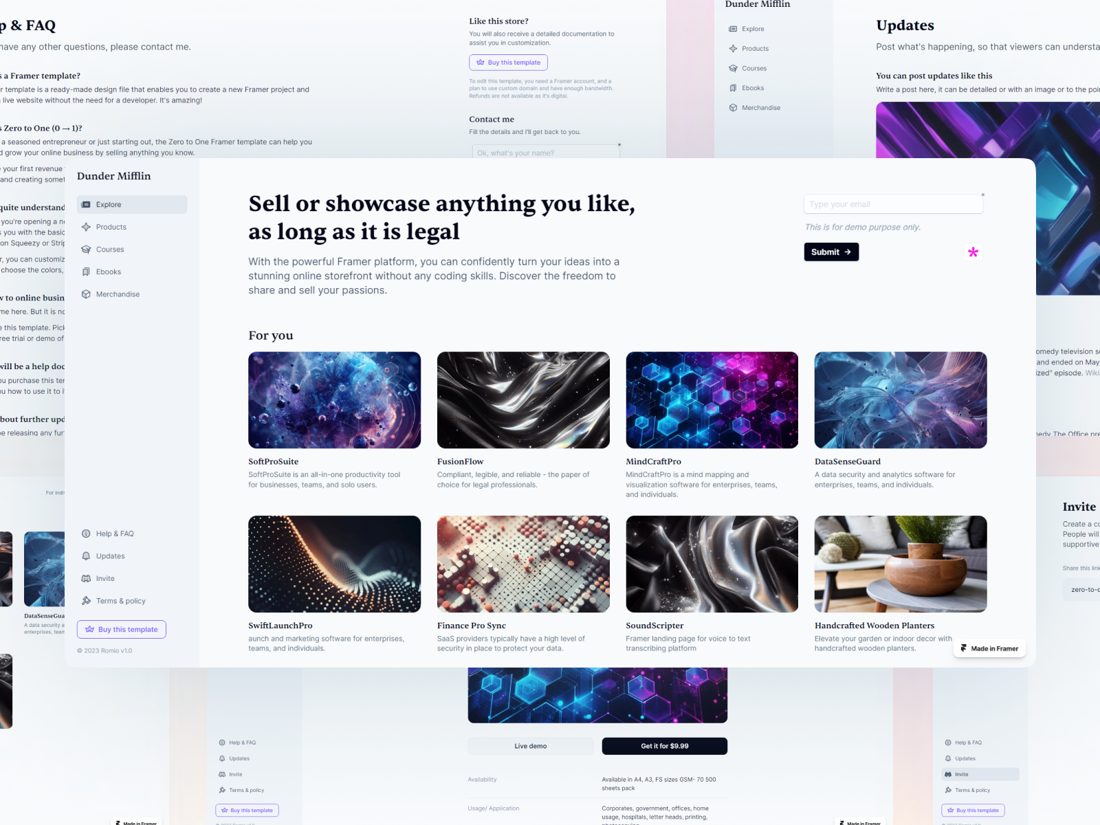 An eCommerce Framer template designed for entrepreneurs - sell or showcase! Check out the live demo. To use this template, you need to have a basic understanding of Framer. No refunds will be provided, as it is a digital product. https://coda.io/@romiojoseph/disclaimer-credits-privacy-and-terms