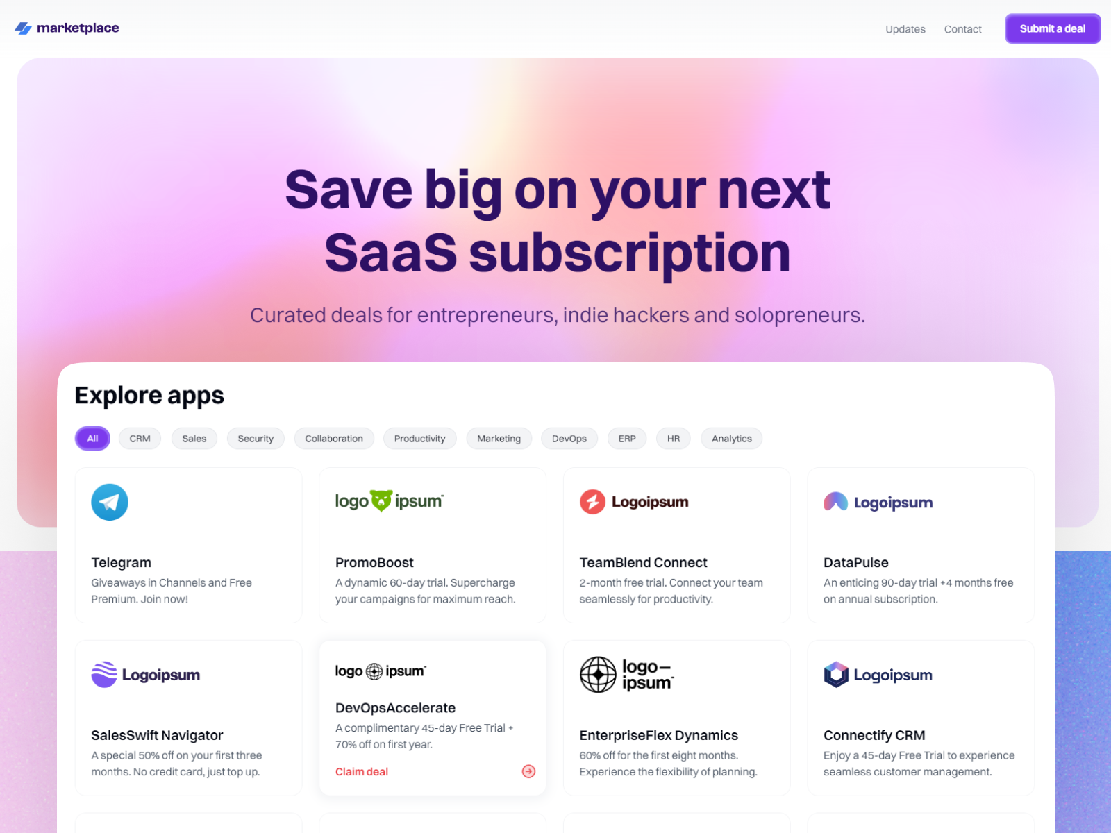 Elevate your affiliate game with this Framer template! Showcase apps with deals seamlessly—just upload the logo, product name, and referral link. Boost visibility and drive clicks effortlessly.Check the demo here. To use this template, you need to have a basic understanding of Framer. No refunds will be provided, as it is a digital product. https://coda.io/@romiojoseph/disclaimer-credits-privacy-and-terms
